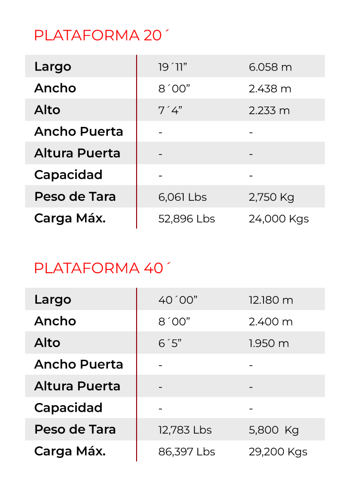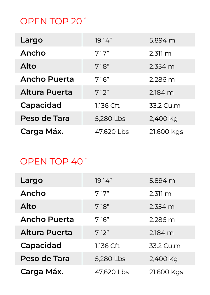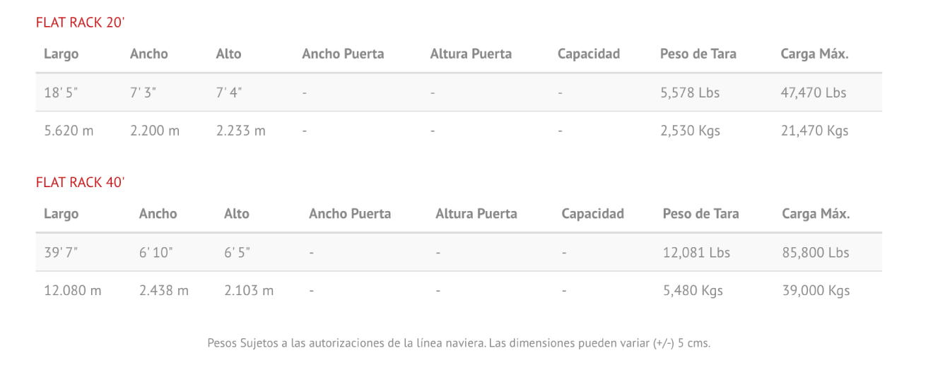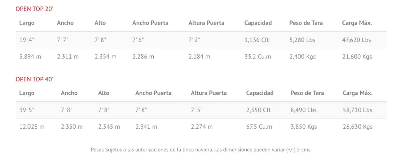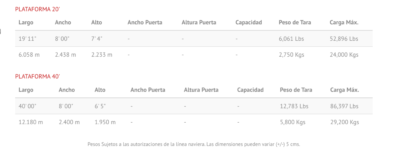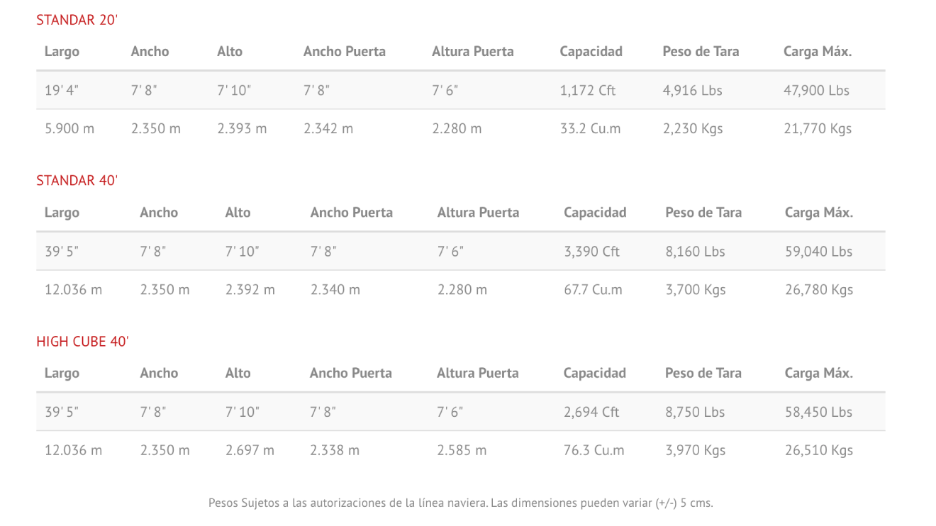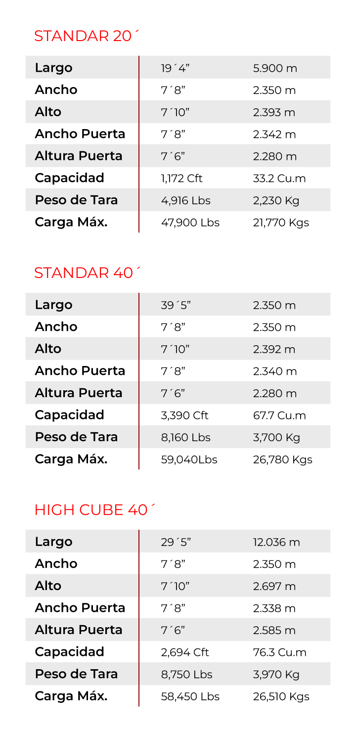 Especificaciones de Contenedores