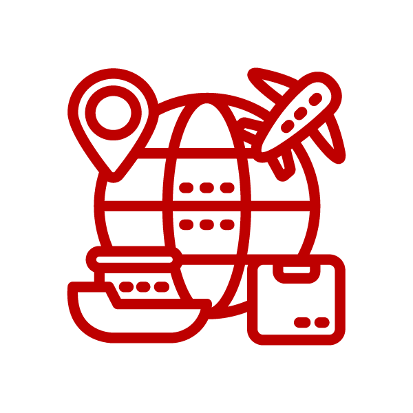 Logística y transporte: Terrestre, marítimo y aéreo, consolidación, almacenaje, distribución, seguro de mercancías, empaque, embalaje y maniobras.